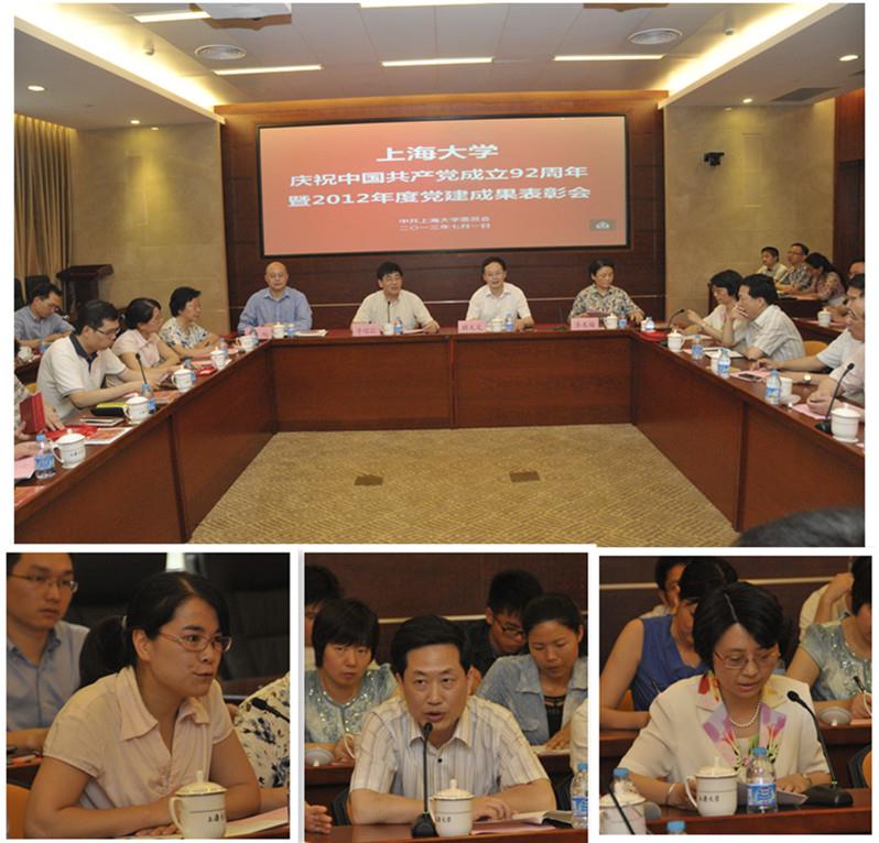 在校党委副书记、副校长李友梅同志宣读完“2012年度组织生活优秀案例表彰决定”、“学校第九轮好项目表彰决定”以及2012年度党建研究课题表彰决定”后,各学院(系统)党委、直属党总支的获奖代表上台领奖,于信汇、李友梅、顾大文对获奖代表颁发了荣誉证书。